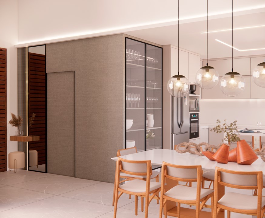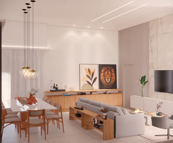 O ponto inicial de todo o projeto é saber ouvir, a essência do cliente precisa estar estampada em cada detalhe. Esse projeto contém a identidade de um casal com estilo contemporâneo e atemporal. Todos os ambientes da residência de 220m² foram projetados seguindo esse perfil. Os ambientes integrados instigam a permanência e trazem o aconchego necessário para cativar cada individuo que estiver no local.